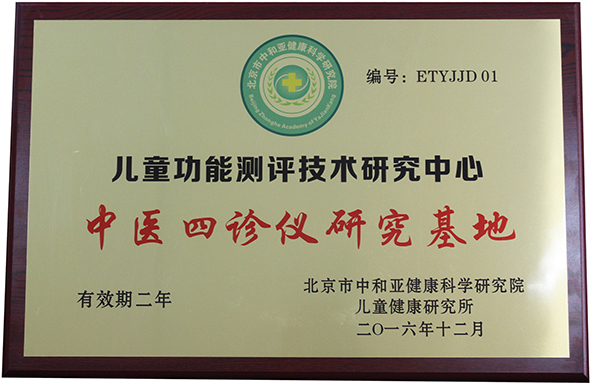 2016年12月28日,北京市中和亞健康科學(xué)研究院兒童健康研究所,正式授牌蕪湖圣美孚科技有限公司為兒童功能測評技術(shù)研究中心、中醫(yī)四診儀研究基地。