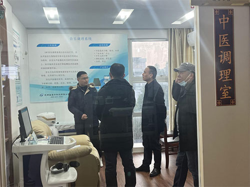 隨后章主任一行來到我司中醫(yī)調(diào)理室,并饒有興致的聽取工作人員介紹中醫(yī)調(diào)理室的成立背景、各模塊組成及工作原理、項目實施及落地情況,在工作人員演示完中醫(yī)音樂調(diào)理系統(tǒng)之后,對公司將中醫(yī)理論與人工智能融合表示高度贊賞,并鼓勵企業(yè)加大宣傳推廣力度。